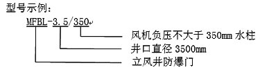 立風(fēng)井防爆門按風(fēng)機(jī)負(fù)壓分為不大于350mm水柱和不大于450mm水柱兩大類,按井口直徑有3個(gè)規(guī)格,共有6個(gè)型號(hào)規(guī)格,見下表: