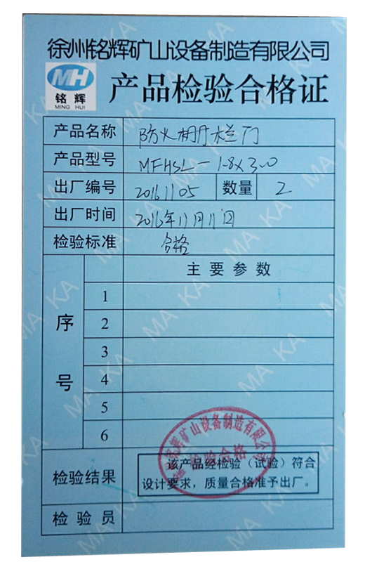 本防火及柵欄兩用門為煤炭工業(yè)部武漢煤礦設計研究院設計,產品質量標準和檢測標準嚴格執(zhí)行Q/WMS-3011-2005《防火及柵欄兩用門》。